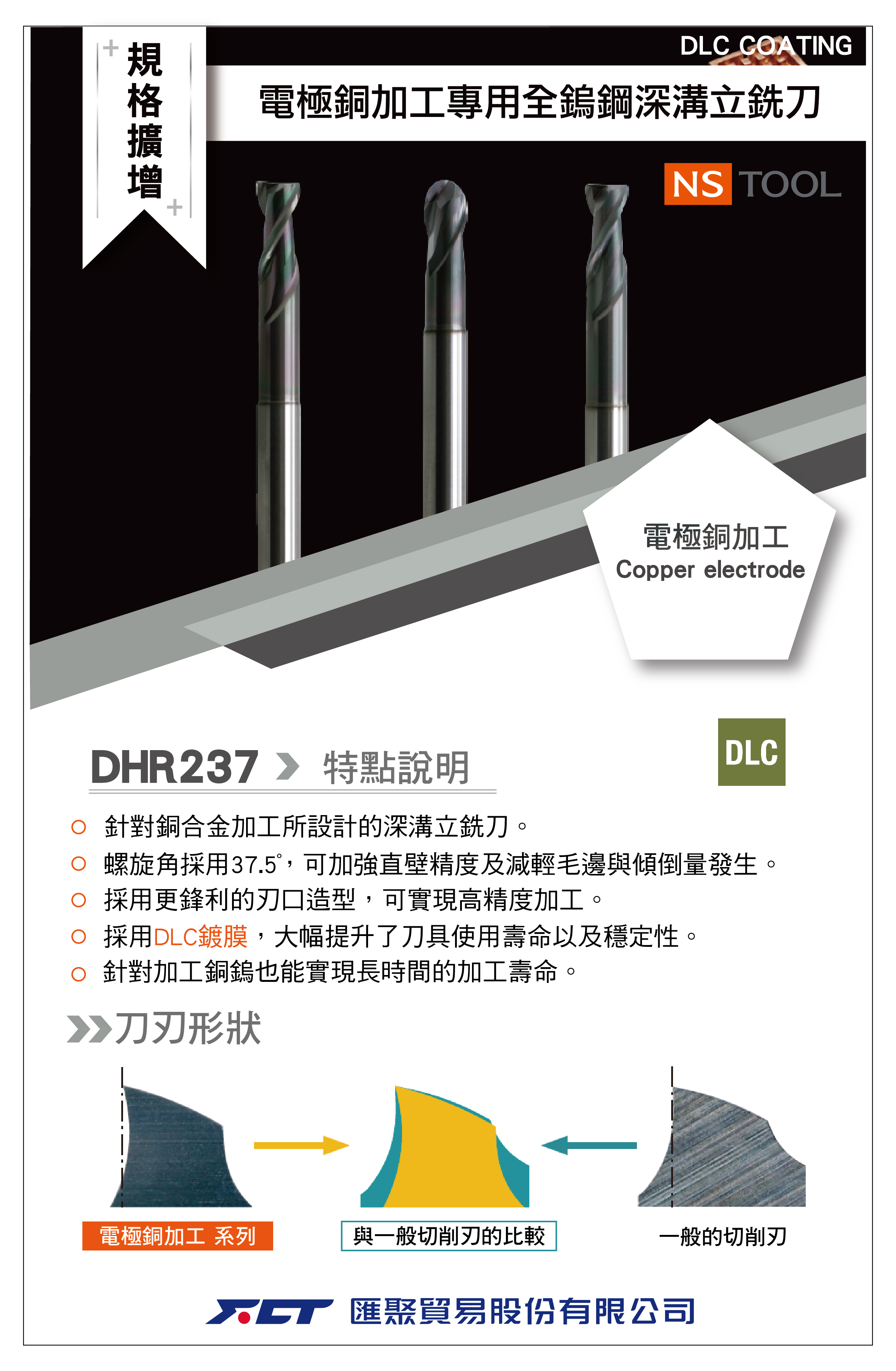 規格擴增:電極銅加工專用全鎢鋼深溝立銑刀